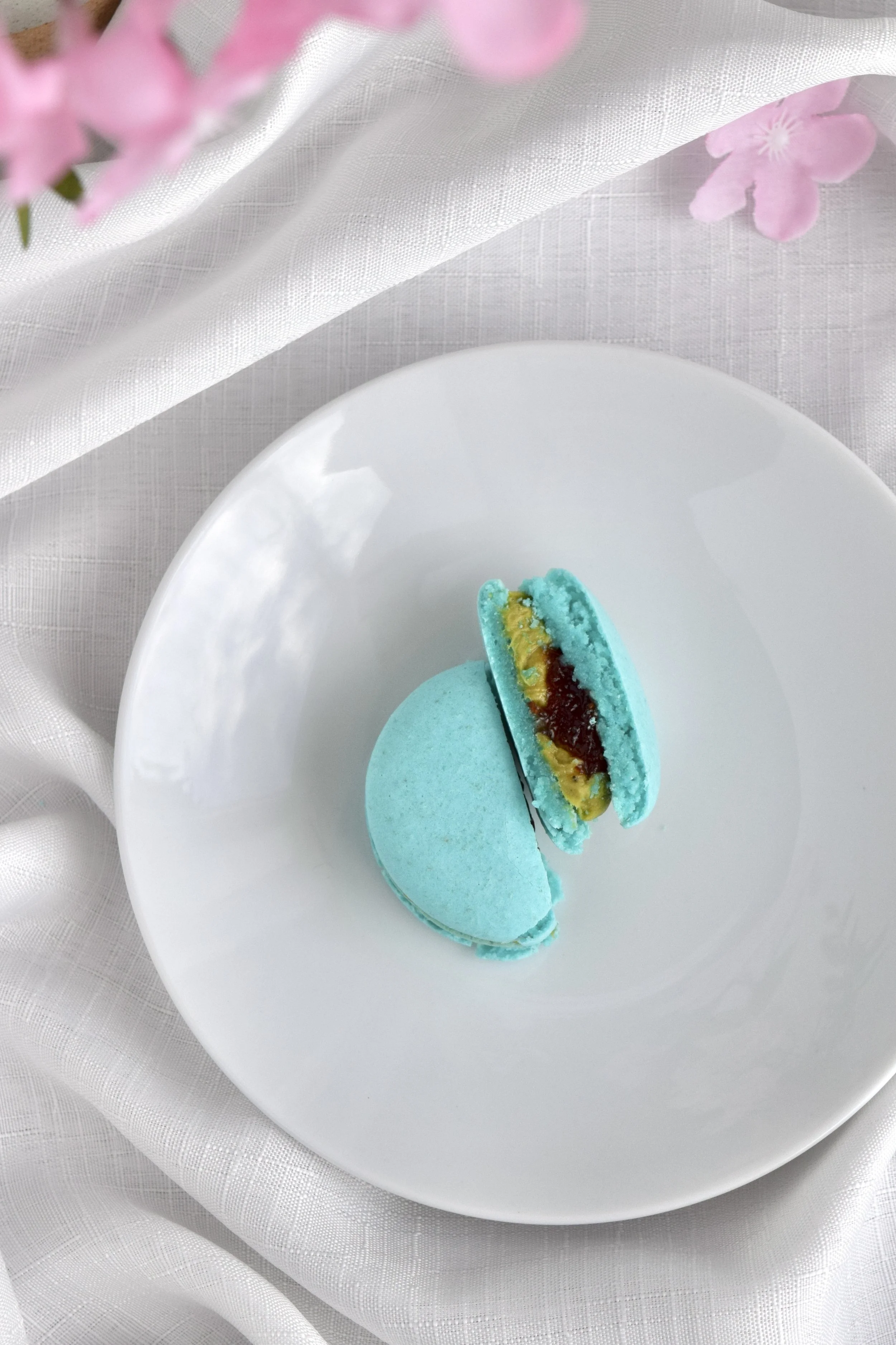 Our macarons are made in a kitchen that also processes tree nuts, peanuts, coconut, wheat, sesame seeds etc. and the risk of cross-contamination is high. Unfortunately, we suggest to avoid our macarons if you have a high sensitivity to any types of the allergens that are present in our kitchen.
