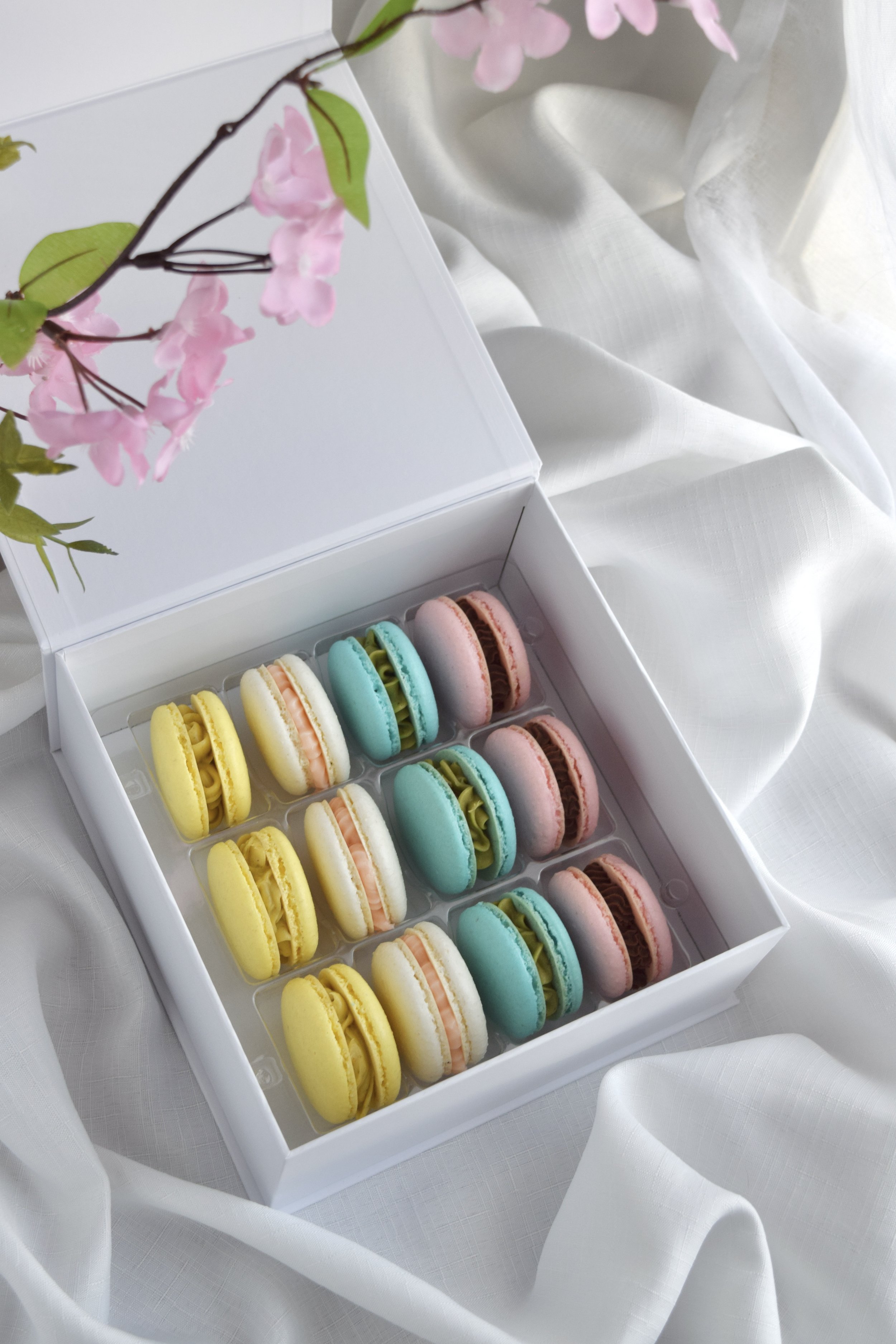 Fall for the elegance and indulgence of our Spring Macaron Special Box, featuring 4 of our most popular flavors: Pistachio-Strawberry, Rose-Raspberry, Matcha-Strawberry and Dark Chocolate-Cherry.